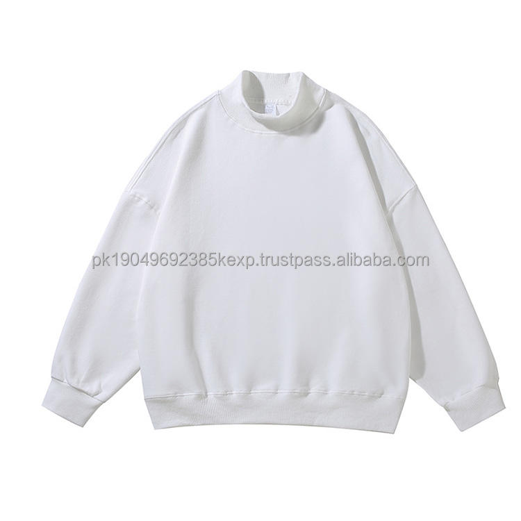 Hot Sale 100% Pure Cotton Knit Men's Turtleneck Long Sleeve Pullover Sweatshirt Winter Season Loose-Fit Without Hood