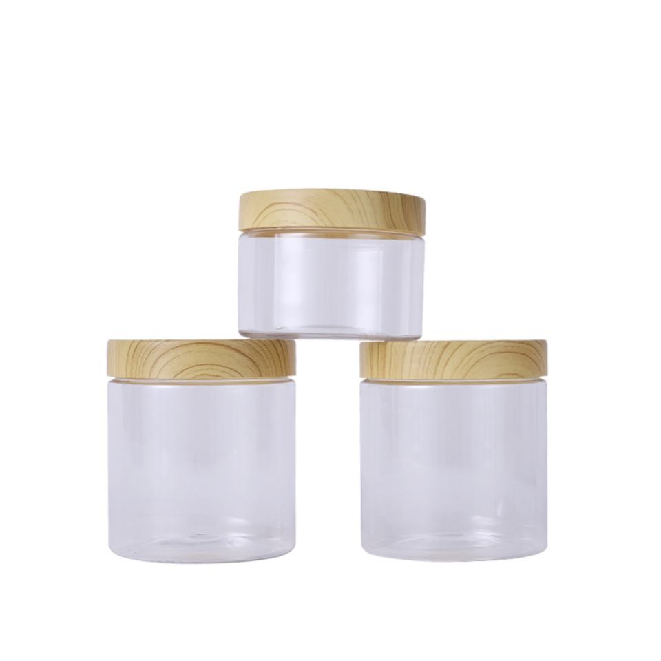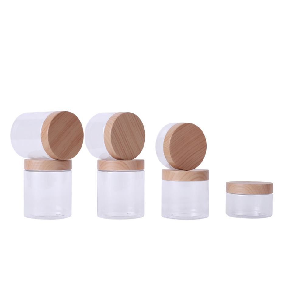Hot Sale 100ml 200ml 250ml 300ml 500ml Plastic Jar with Wooden Lid Transparent Container Empty Cosmetic Face Cream Powder Pot