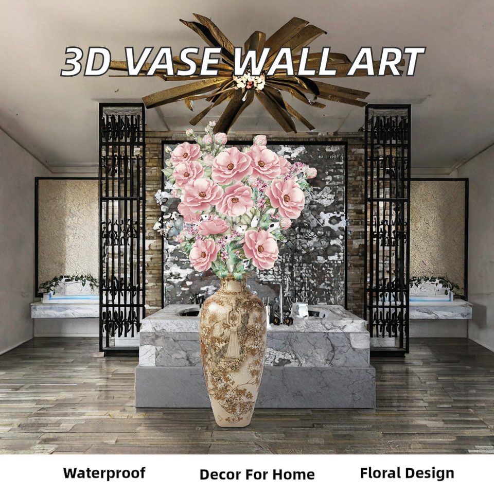 Hot Sale 120cm Self-Adhesive 3D Vase Flower Wall Sticker UV Printed PVC for Home Decoration