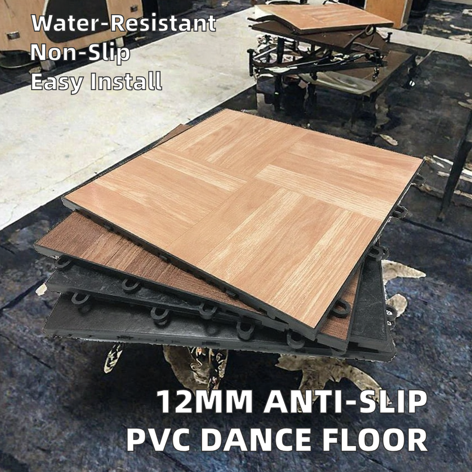 Hot Sale 12mm Thick Waterproof Anti-Slip PVC Vinyl Dance Floor Tiles Durable Modern Wedding Dance Click Interlocking Hotel