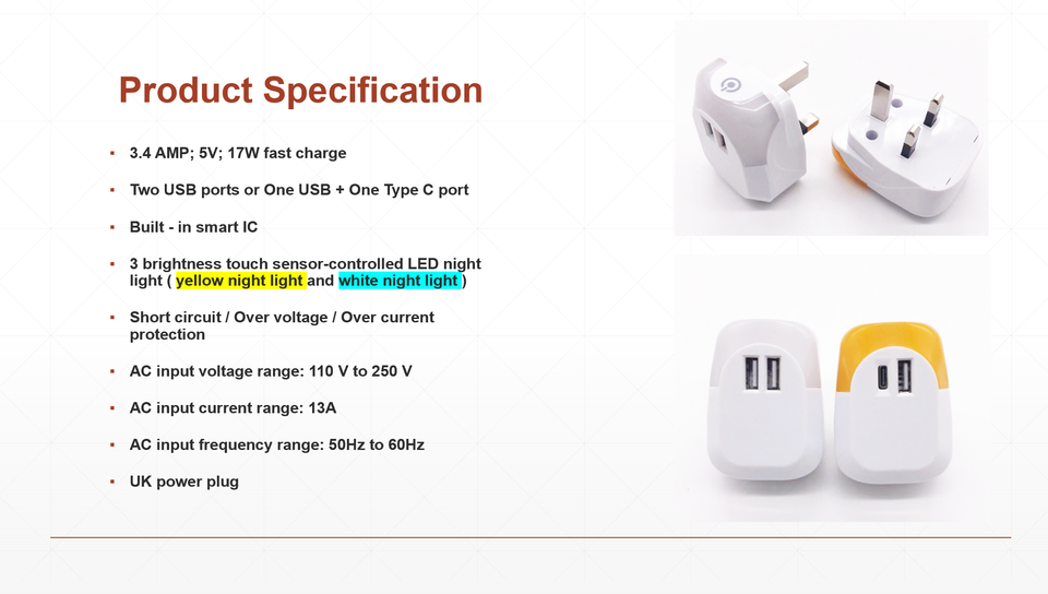 Metal material:Full copper UK 3 pins or other national standard plugs are available