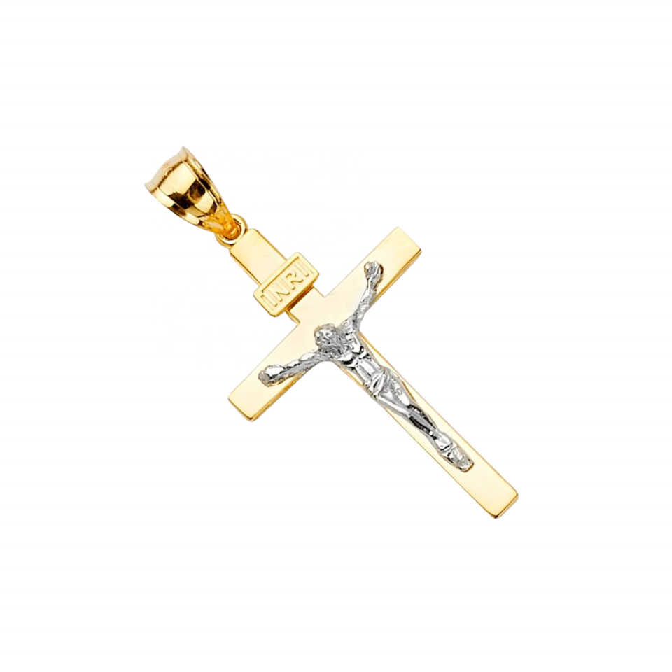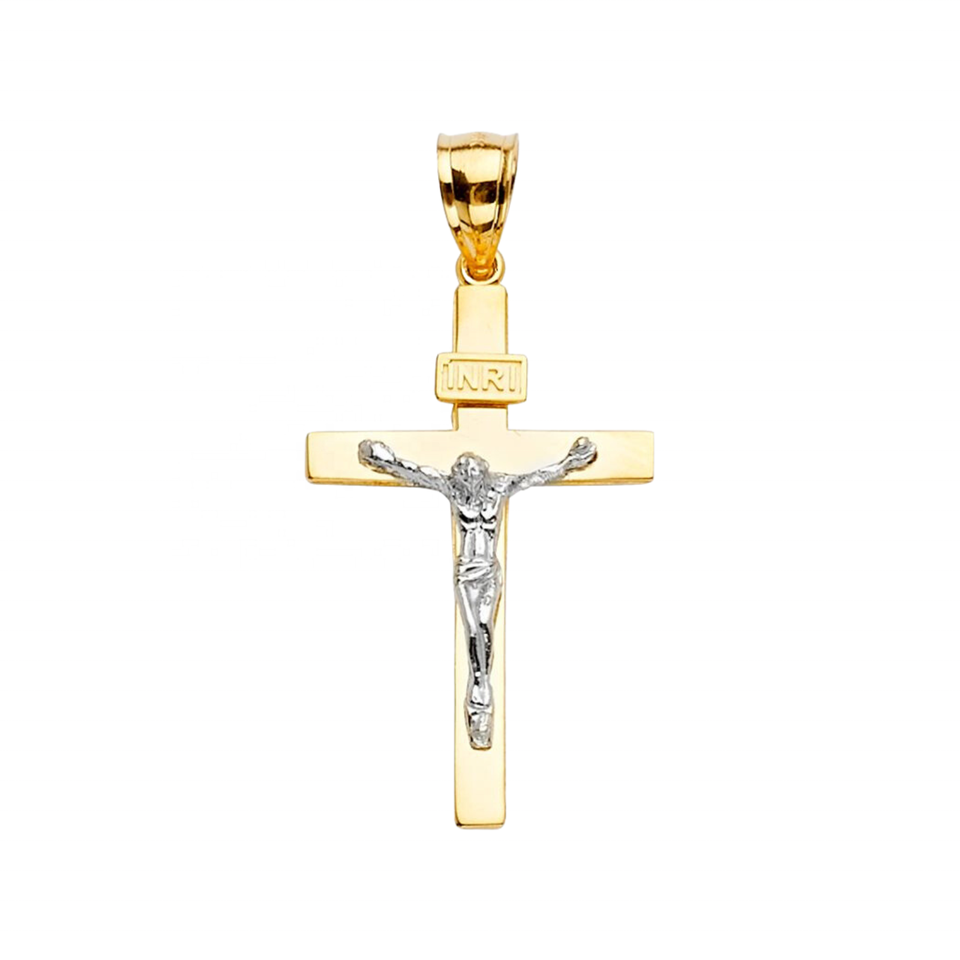 Hot Sale 14K Two Tone Gold Silver Plated Crystal Crucifix Pendant Linear Cross Design Religious Christian Children's Men Women