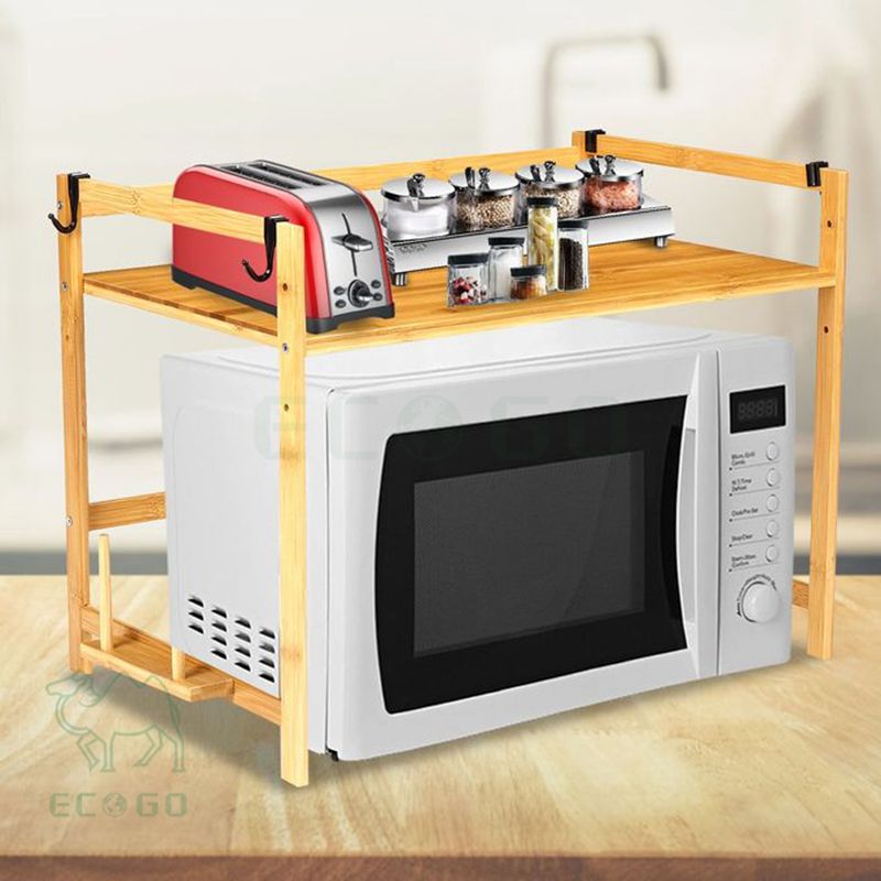 Hot Sale 2 Tier Durable Bamboo Microwave Shelf Height Adjustable Rack Kit Natural Color Bamboo Shelf for Household