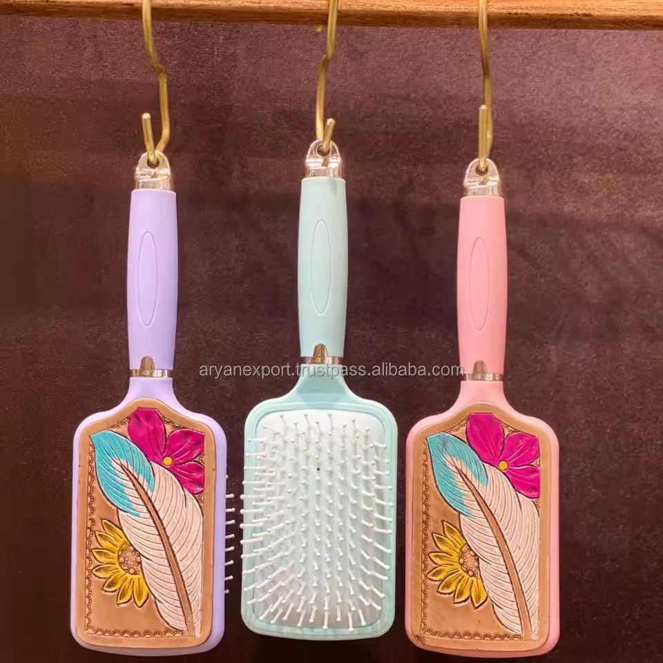 Type:Hand Tooled Leather Colorful Paddle Hairbrush