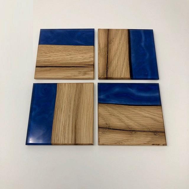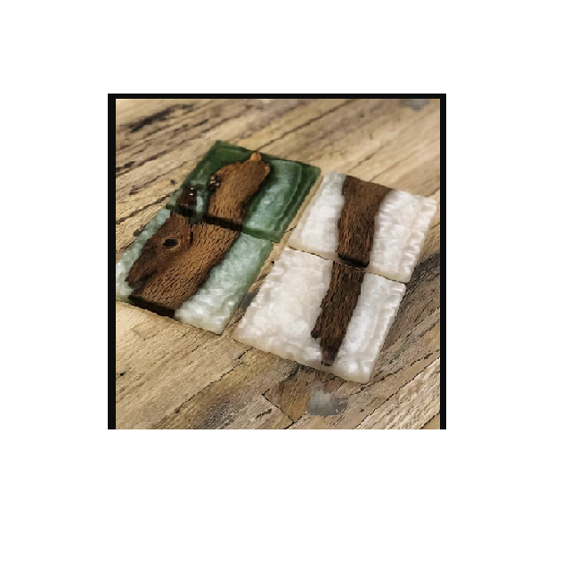 Hot Sale 2025 Top Quality Customize Square Round Epoxy Wood Resin Coaster With Holder Set Mango wood joint Resin Stone Coasters