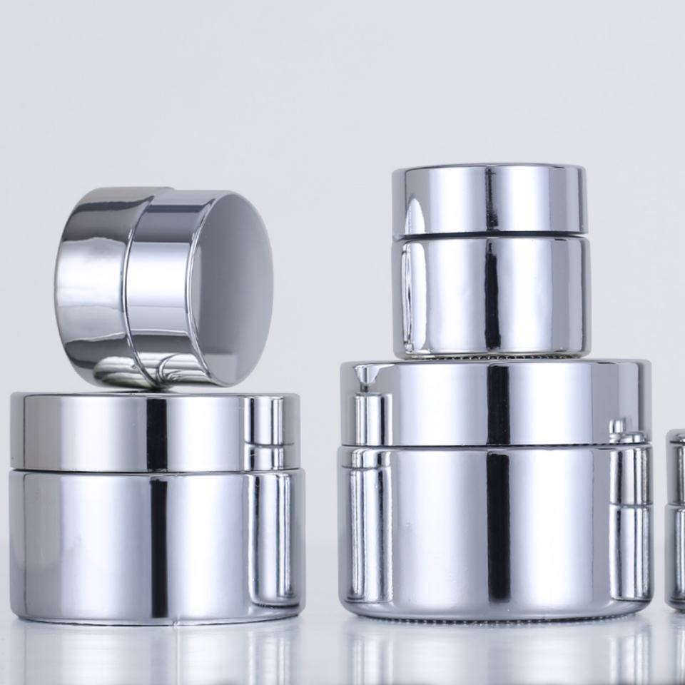 Hot Sale 20g 30g 50g Electroplating Gold Silver Lid Glass Cosmetic Jar with Eye Cream Face Mask Can Customized logo