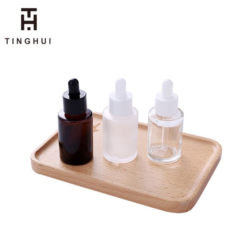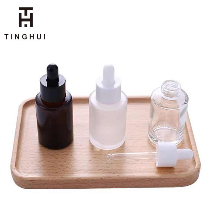 Hot Sale 20ml 30ml 50ml 60ml 80ml Essential Oil Serum Flat Shoulder Amber Frosted clear Glass Bottle with Pipette
