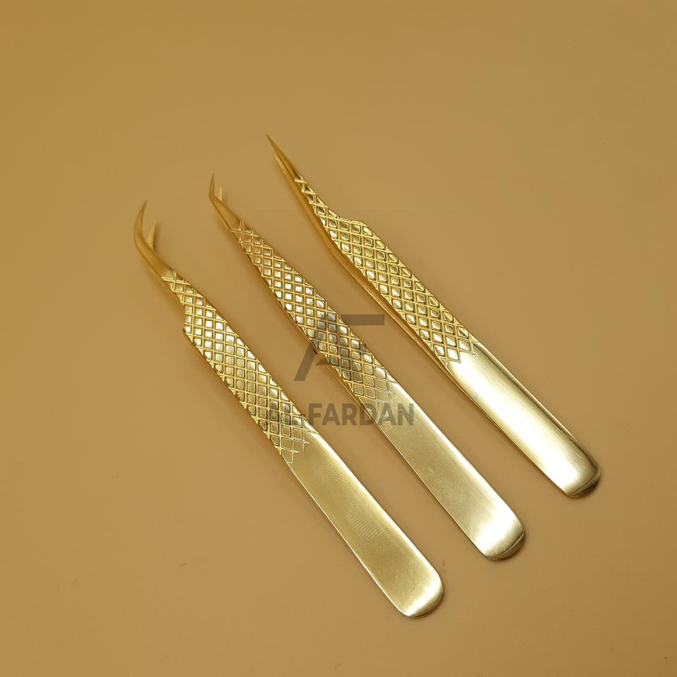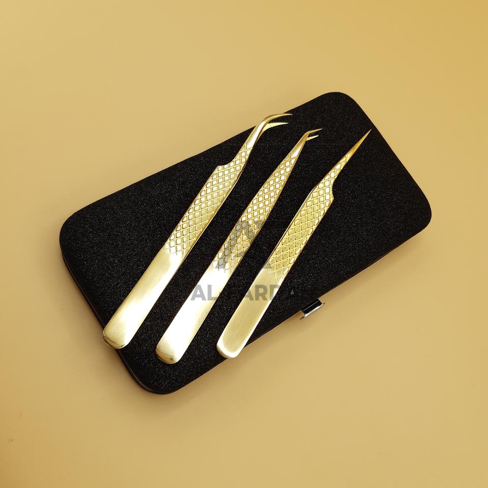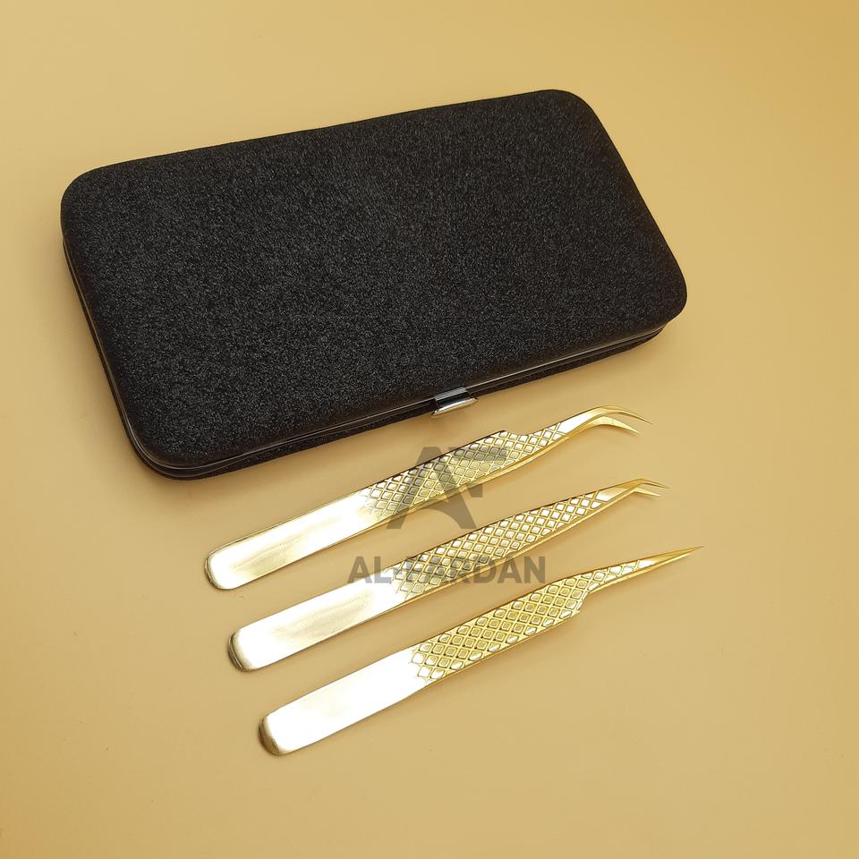 Hot Sale 24K Gold Plated Japanese Stainless Steel Eyelash Extension Tweezers Diamond Grip Magnetic Cases with Pointed Tip