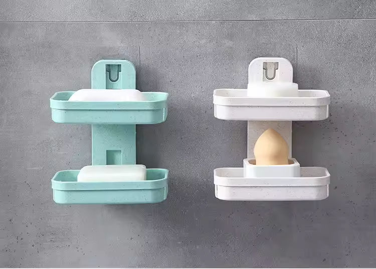 Hot Sale 2pcs Plastic Storage Shelf and Soap Rack Bathroom Decoration Accessory Set for Shower Douche Soap Holder