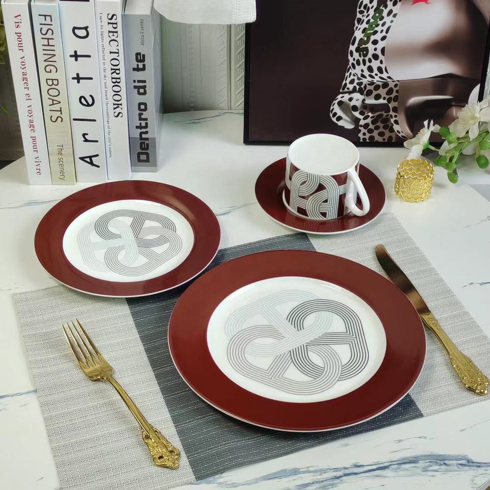 Hot Sale 4-Piece Nordic Luxury Red Runway Ceramic Plate Set Eco-Friendly with Gift Box for Restaurant Use