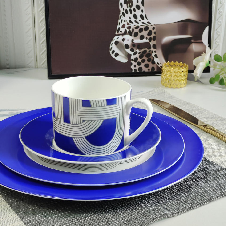 Hot Sale 4 Piece Nordic Luxury Blue Runway Restaurant Set Porcelain Plate with Gift Box