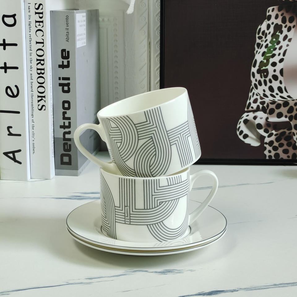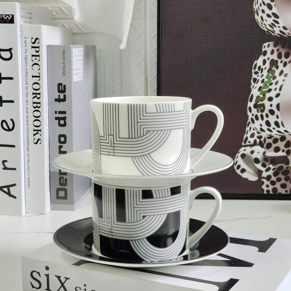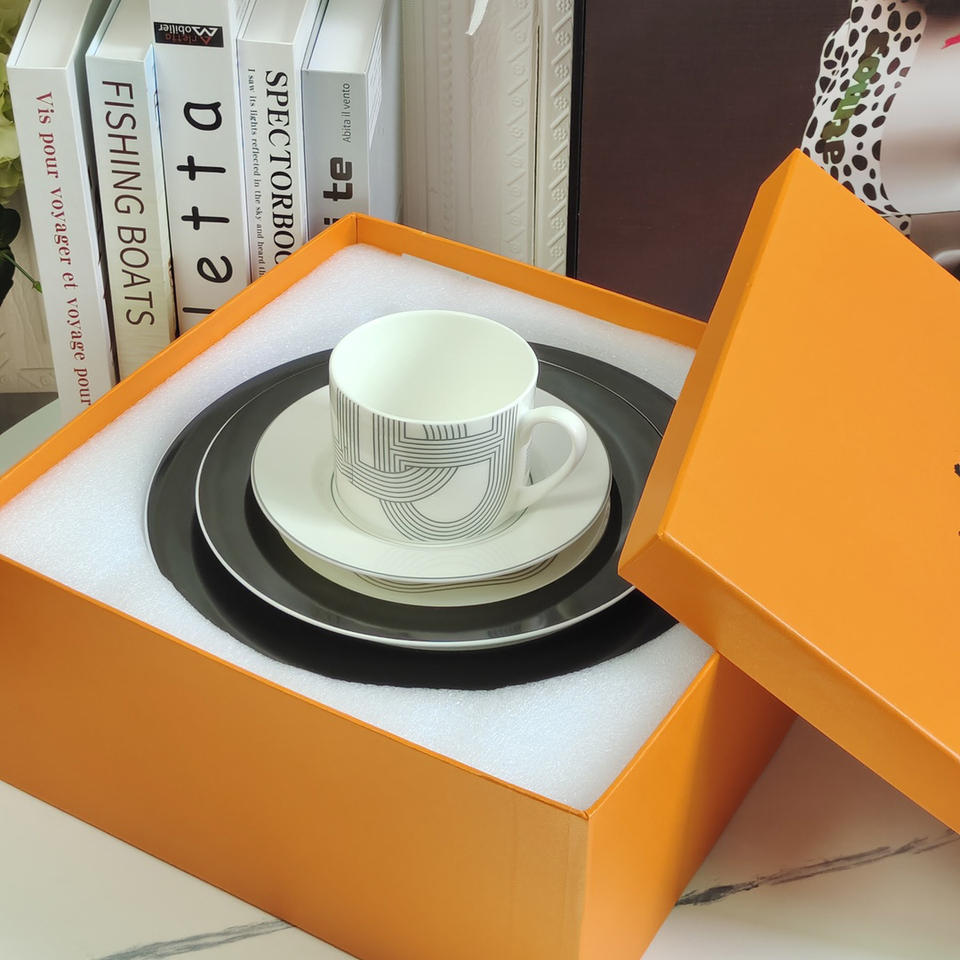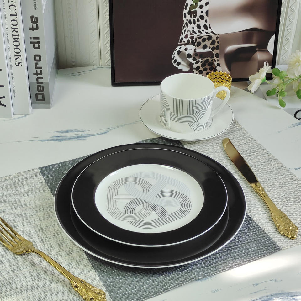 Hot Sale 4pcs Nordic Luxury Black and White Runway Restaurant Set Porcelain Plates with Gift Box