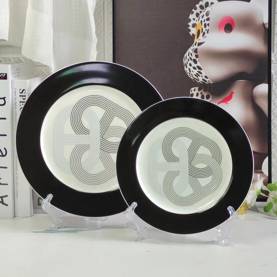 Hot Sale 4pcs Nordic Luxury Black Runway Restaurant Set Ceramic Plate with Gift Box