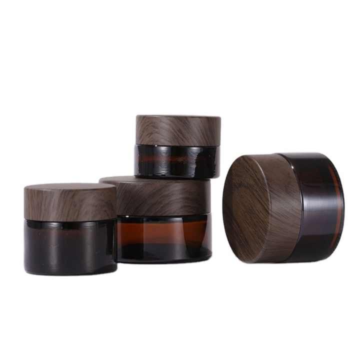 Hot Sale 5g 10g 15g 20g 30g 50g 100g Facial Care Cosmetic Packaging Amber Brown Cosmetic Glass Cream Jar with Dark Wood Lid