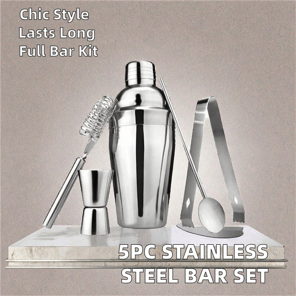 Hot Sale 5pcs Stainless Steel Boston Shaker for Cocktails Wine Martini-for Bartender Party Travel Christmas Halloween Bar Tools