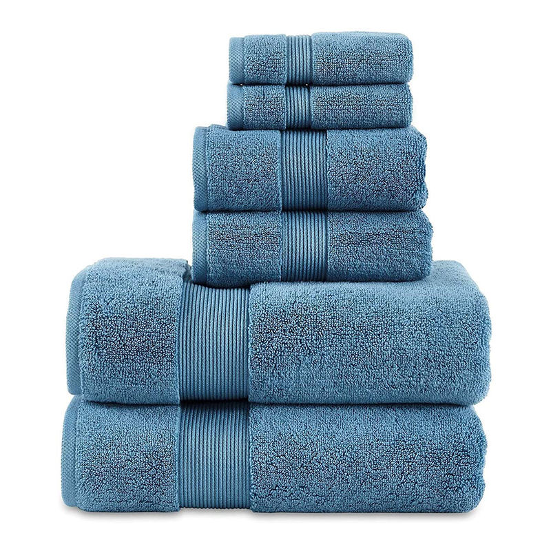 Hot Sale 6-Piece Terry 100% Cotton Custom Luxury Bath Towel Sets Bleached & Antimicrobial