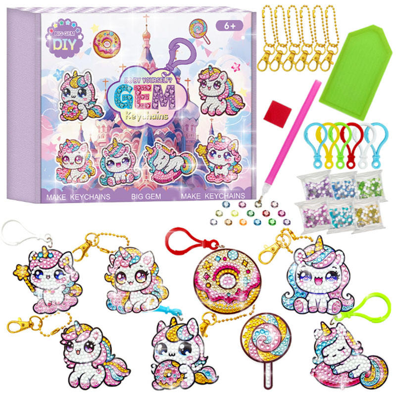 Hot Sale 8pcs Set Plastic Crystal Beads Key Chains DIY Round Dots Kids Diamond Painting Subjects Girl Packed in Box