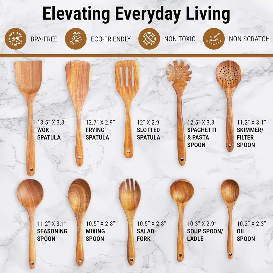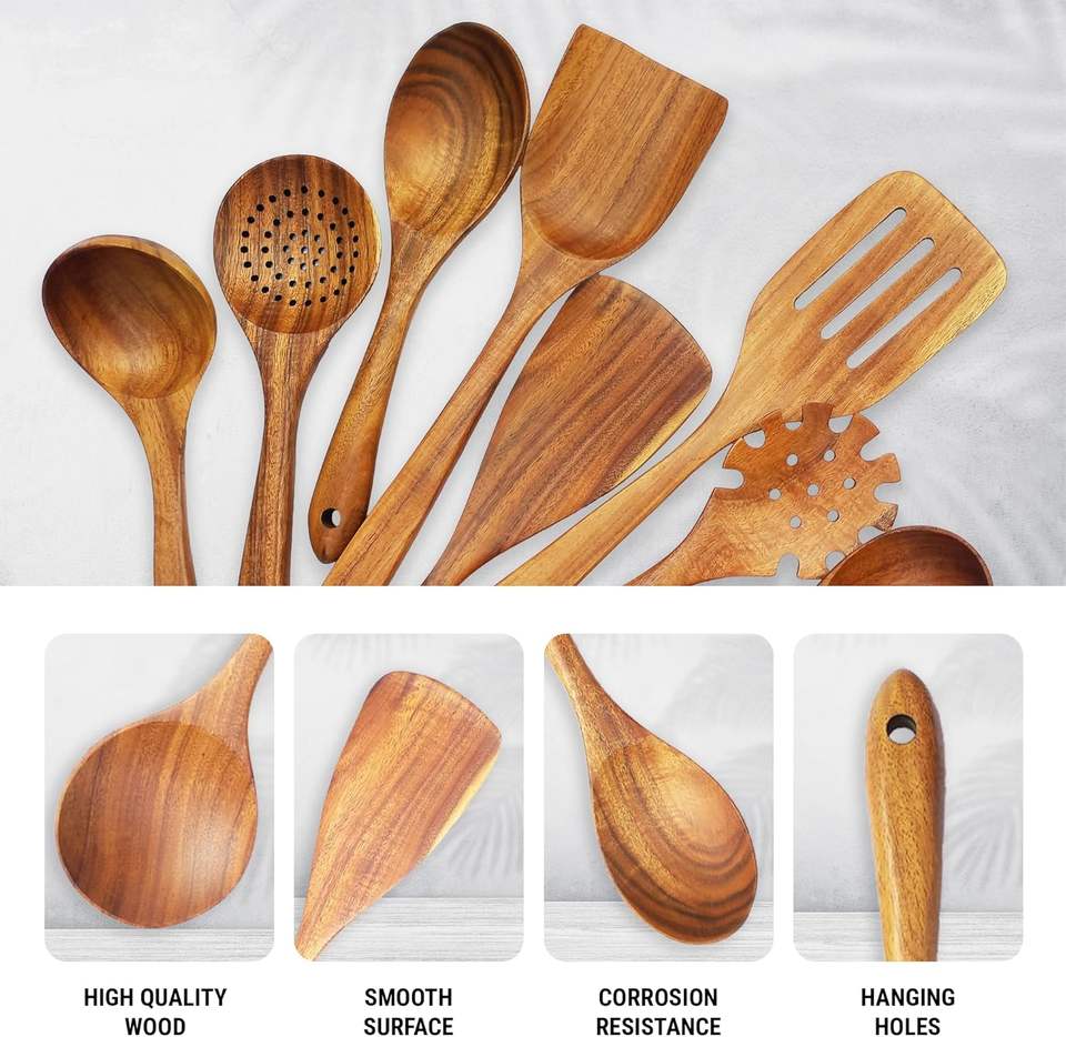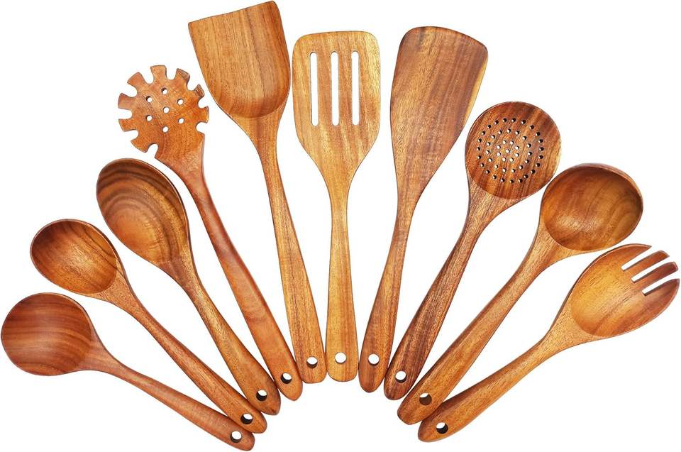 Hot Sale 9-Piece Non-Stick Acacia Wood Kitchen Cooking Teak Wooden Spoon Spatula Utensils High Quality Stock Available