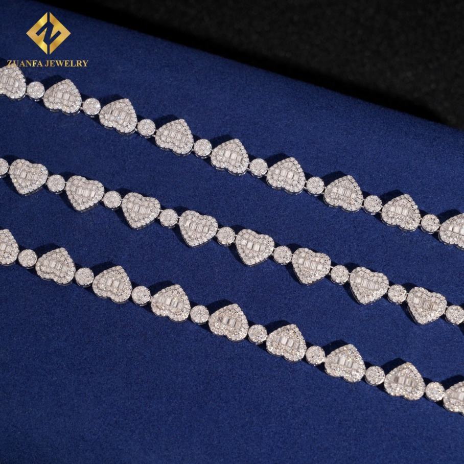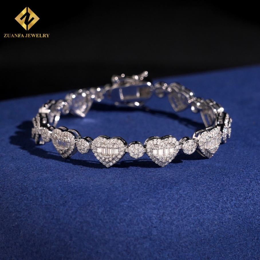 Hot Sale 925 Silver Heart Shape Moissanite Bracelet HipHop GRA Certified Iced Out Moissanite Cuban Bracelets