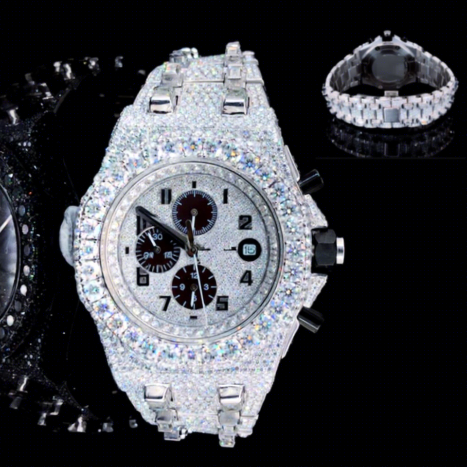 Hot Sale 925 Silver Luxury Men's Stainless Steel Mechanical Automatic Moissanite Watch 10 Bar Water Resistant Bracelet Clasp