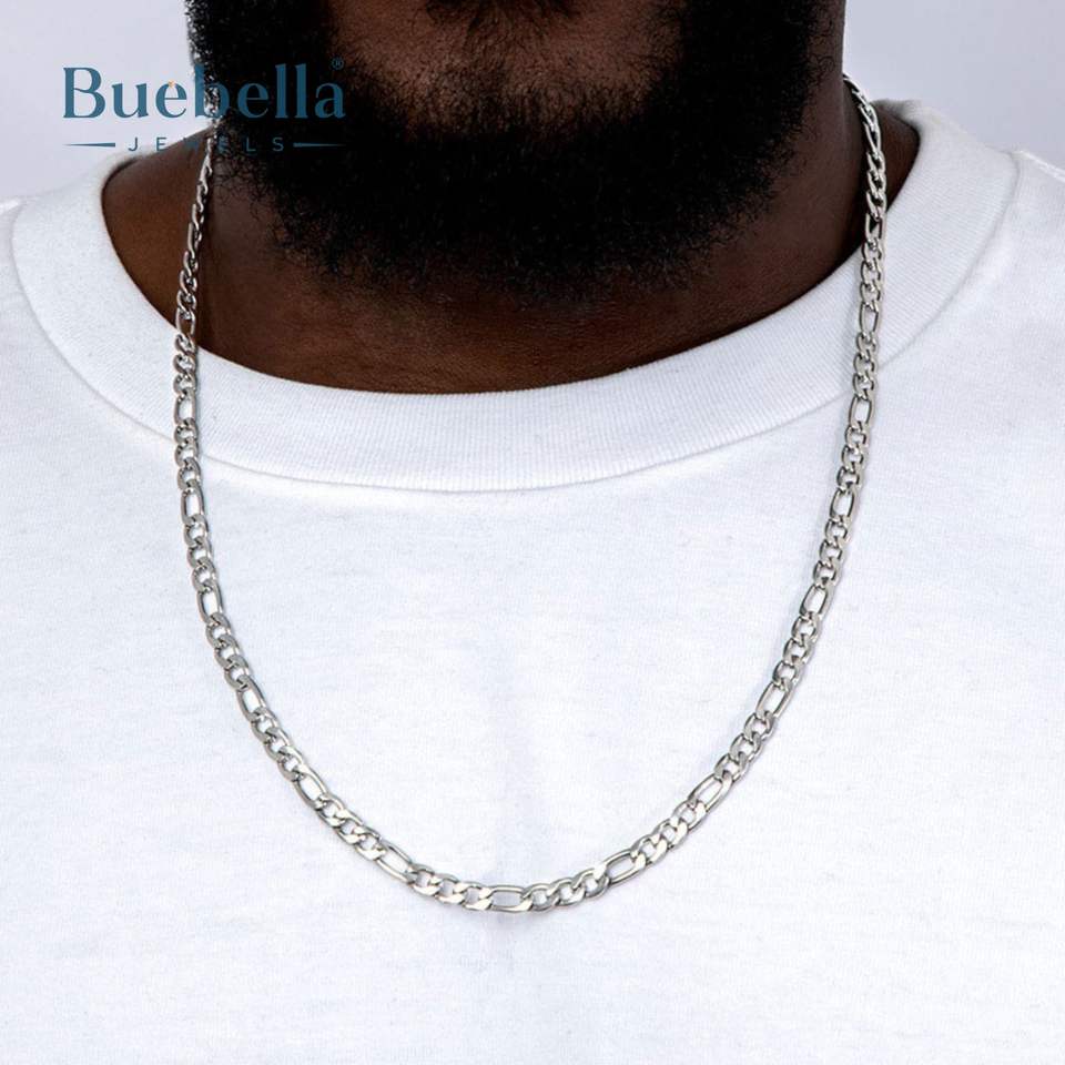 Hot Sale 925 Sterling Silver 14K White Gold Plated 5mm Figaro Chain Premium Moissanite Necklaces for Men