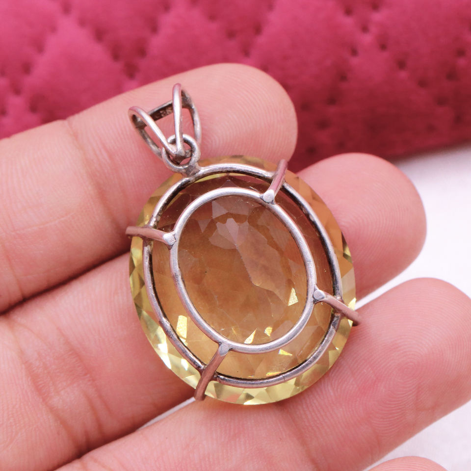 Item Name:925 Sterling Silver Natural Lemon Topaz Gemstone Pendant Necklace