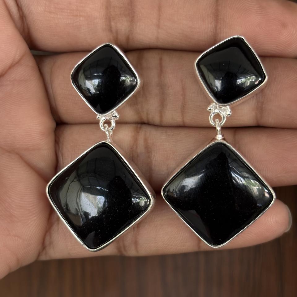 Hot Sale 925 Sterling Silver rectangular Earring Attractive Black Onyx Gemstone long Design Fashionable Women's Accessory Direct