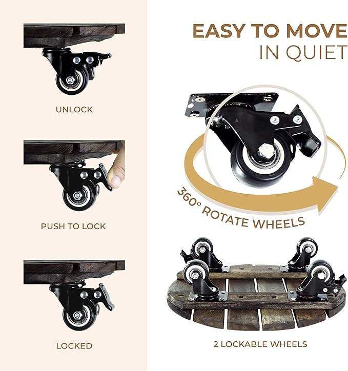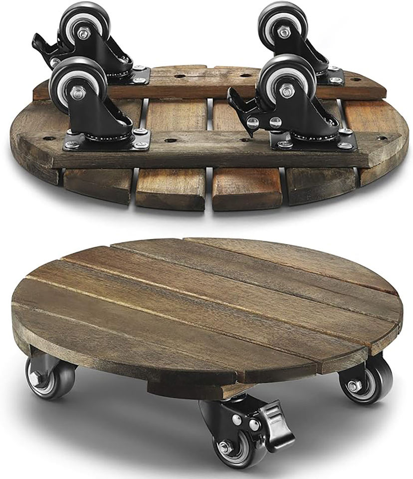 Hot Sale Acacia Wood Heavy Duty Rolling Tray round Planter Trolley Lockable Casters Plant Dolly Flower Pot Dolly for Home Use