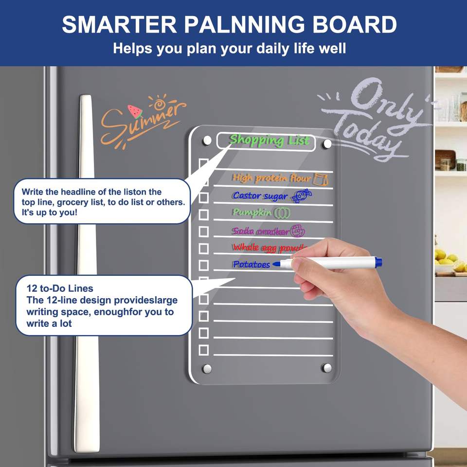 Hot Sale Acrylic clear Magnetic Todo List Board Includes 6 Color Markers for Display Only