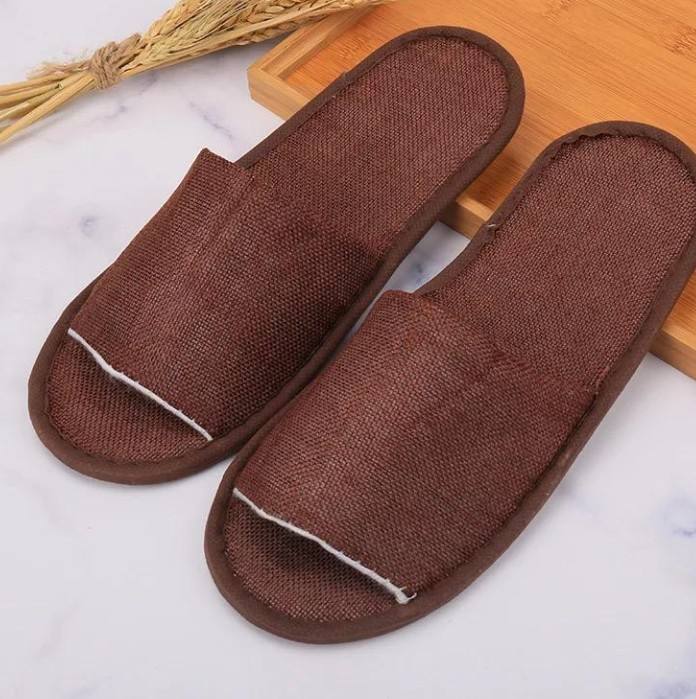 Hot Sale Adjustable Jute Linen Disposable Hotel Spa Slipper Washable Sustainable Woven Plain Dyed Pattern Home Textile