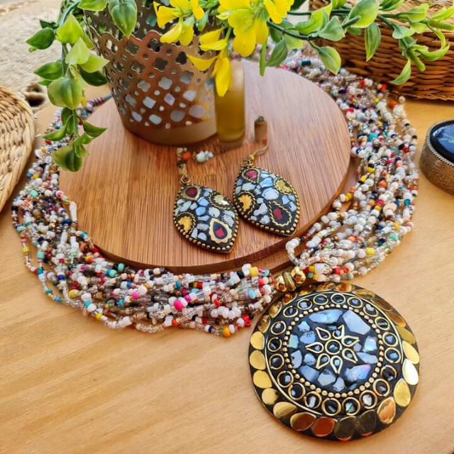 Hot Sale Antique Oxidized Necklace Earrings Mala Set Afghani Tribal Handmade Jewellery for Women Antique Necklace Jewelry Sets