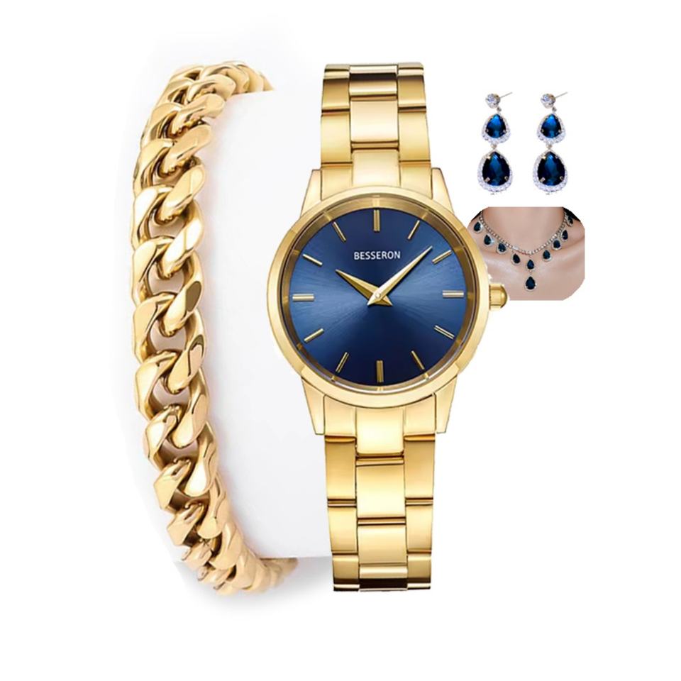 Hot Sale Antiqued Fashion Business Style Stainless Steel 5-Pcs Women's Jewelry Set Montre Pour Femme Watch Bracelet Bangles
