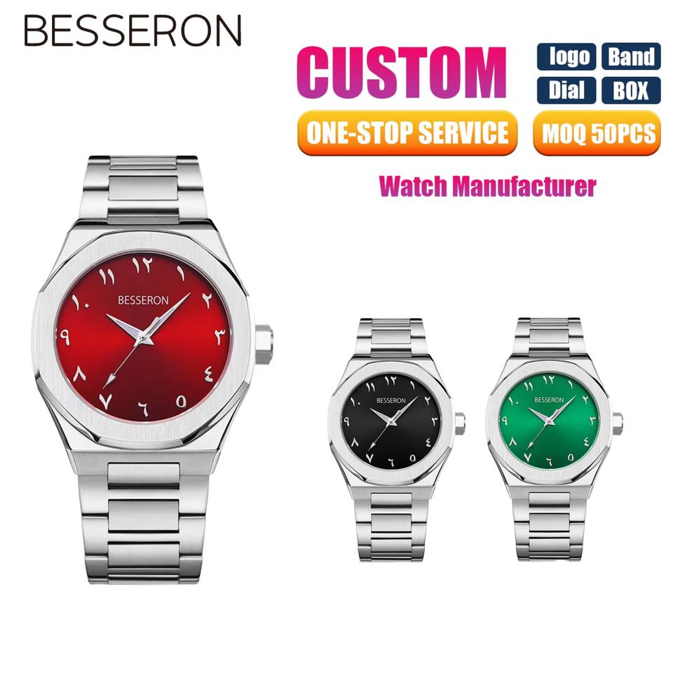 Hot Sale Arabic Quartz Stainless Steel Custom Wrist Watch for Men 5ATM Waterproof Glass Crocodile Chronograph Fashion Business