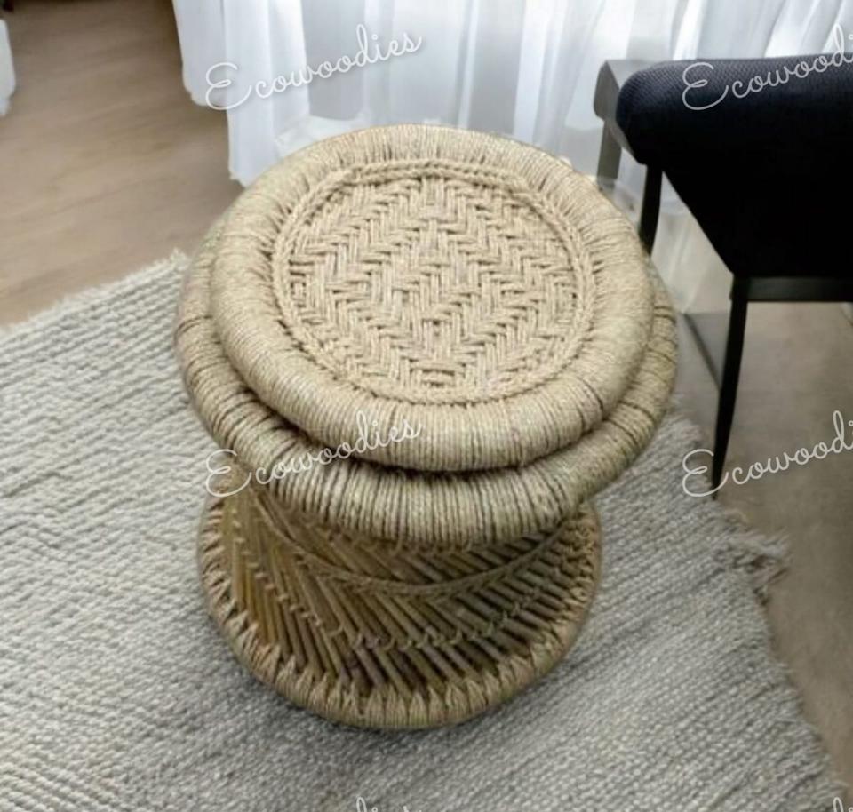 Description:Bamboo Sarkanda Storage Footrest Stool