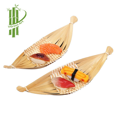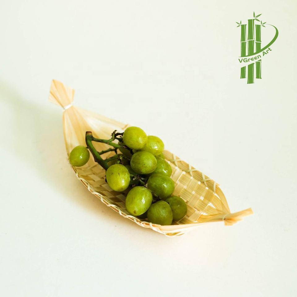 Hot Sale Bamboo Woven Tray Best Selling Sushi Boat Decorative Storage Basket for Food Fruit Cake Vegetable Egg-Wholesale