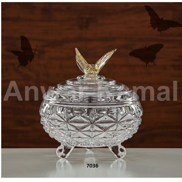 Hot Sale Beautiful Crystal Glass Rounded Chocolate Bowl With Beautiful Butterfly Design Lid For Home Kitchen Counter Top Decor