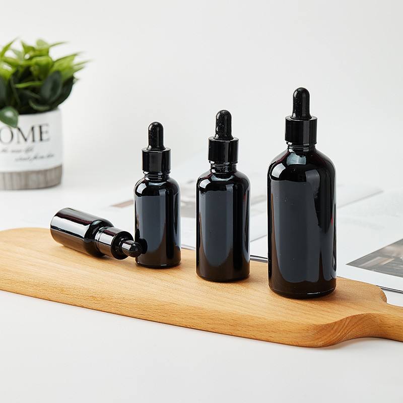 Hot Sale Black Glass Dropper Bottle 5ml 10ml 15ml 50ml Glass Bottles with Black Dropper Cap