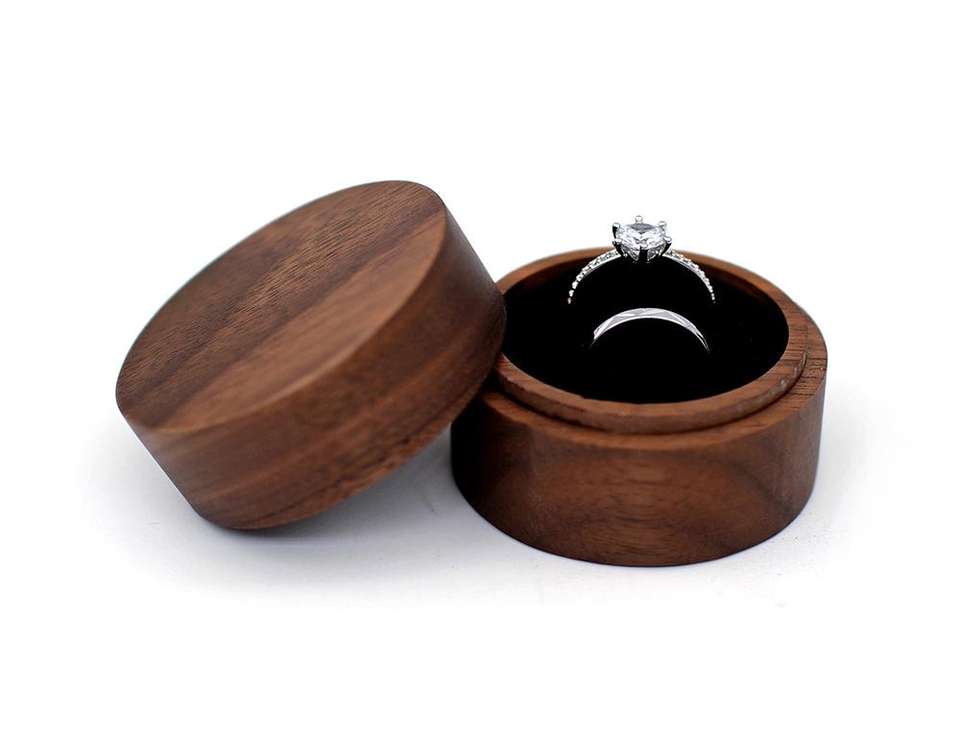 Hot Sale Black Walnut Solid Wood Exquisite Round Packaging Ring Jewelry Organizer Boxes for Lovers Gifts