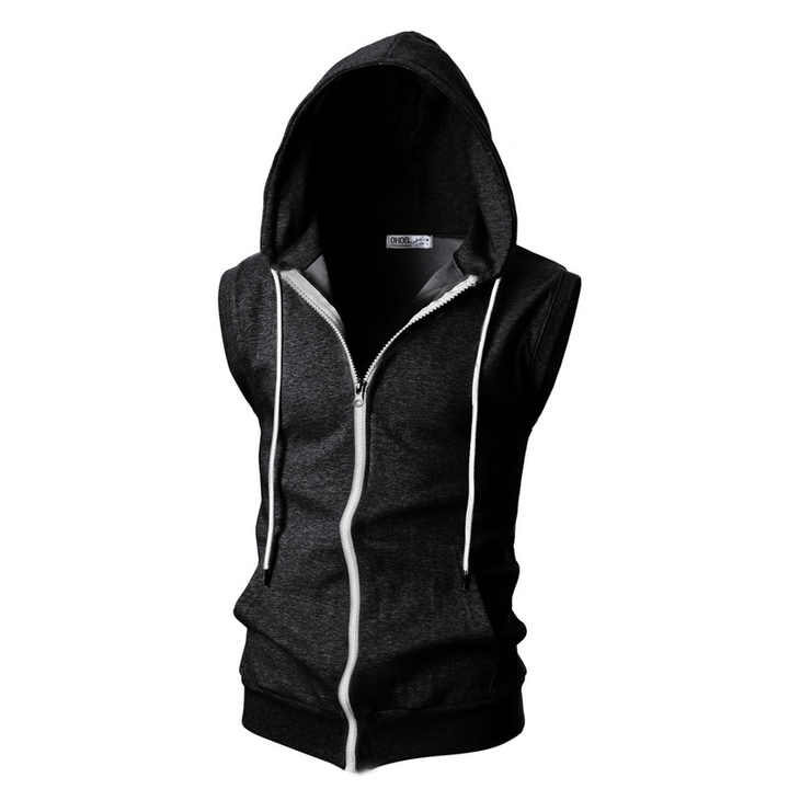 Hot Sale Black Zipper Sleeveless Cotton Gym Hoodies for Women