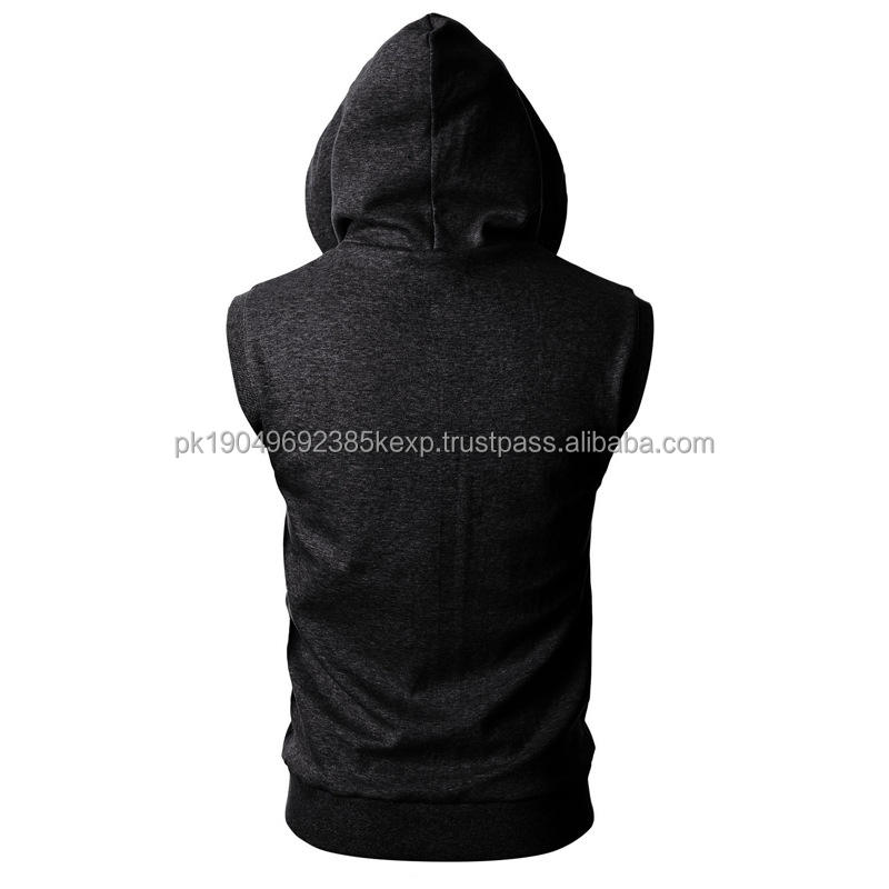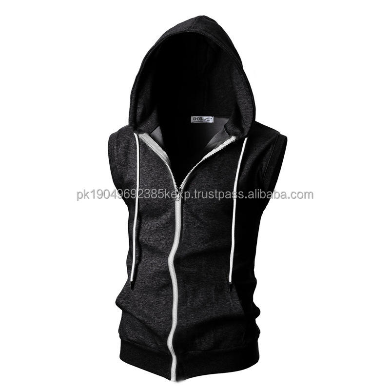 Hot Sale Black Zipper Sleeveless Cotton Gym Hoodies for Women