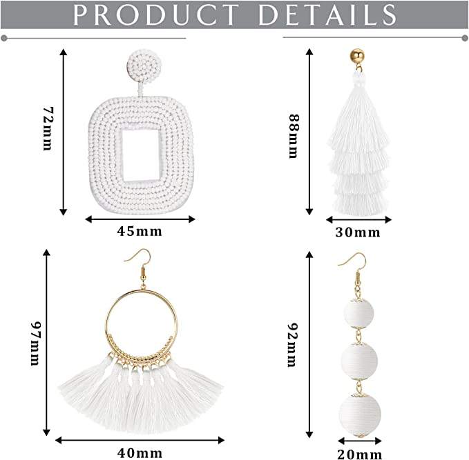 Hot Sale Boho Stylish Vintage Bohemian Tassel Earrings Handmade Fashionable 4-Pairs Combinations Trendy Fashionable Hoop Earings