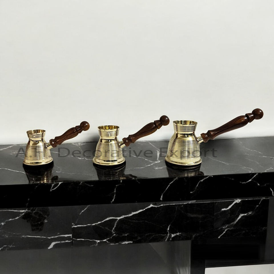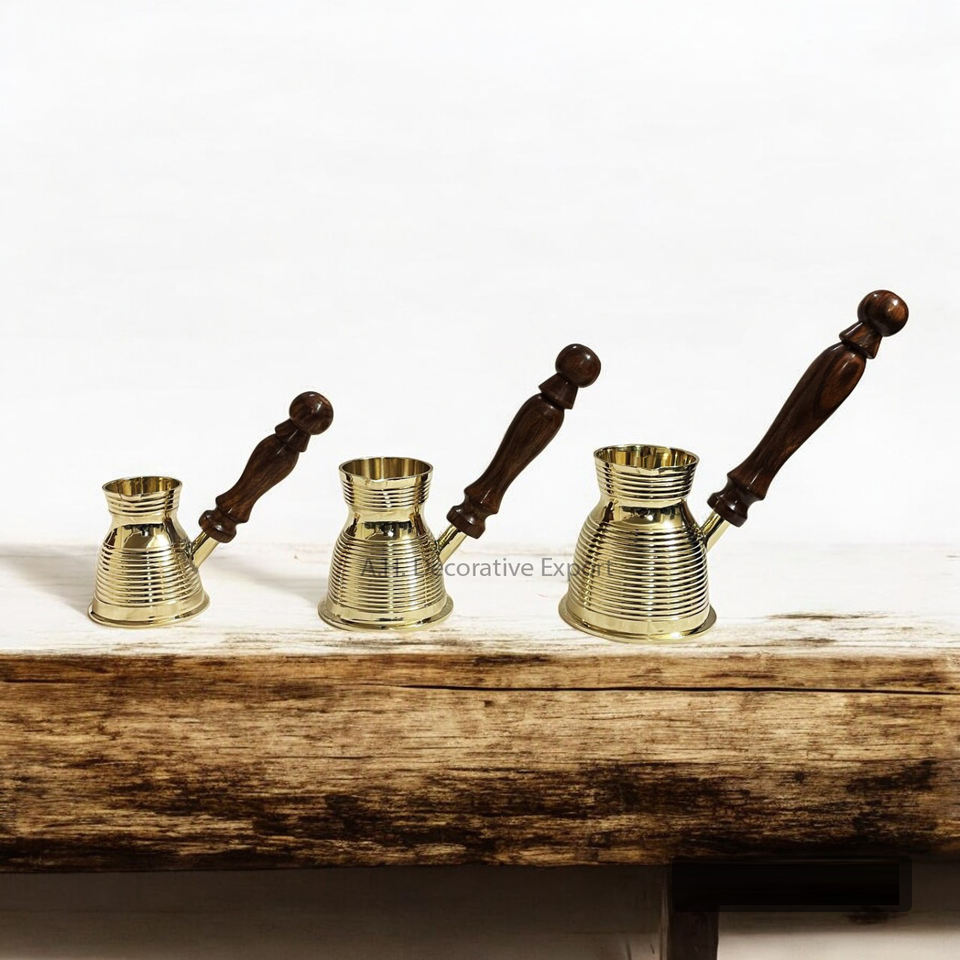 Hot Sale Brass Turkish Coffee Pot with Wooden Handle New Design for Hotels and Restaurants Adult Use Tea & Coffee Container