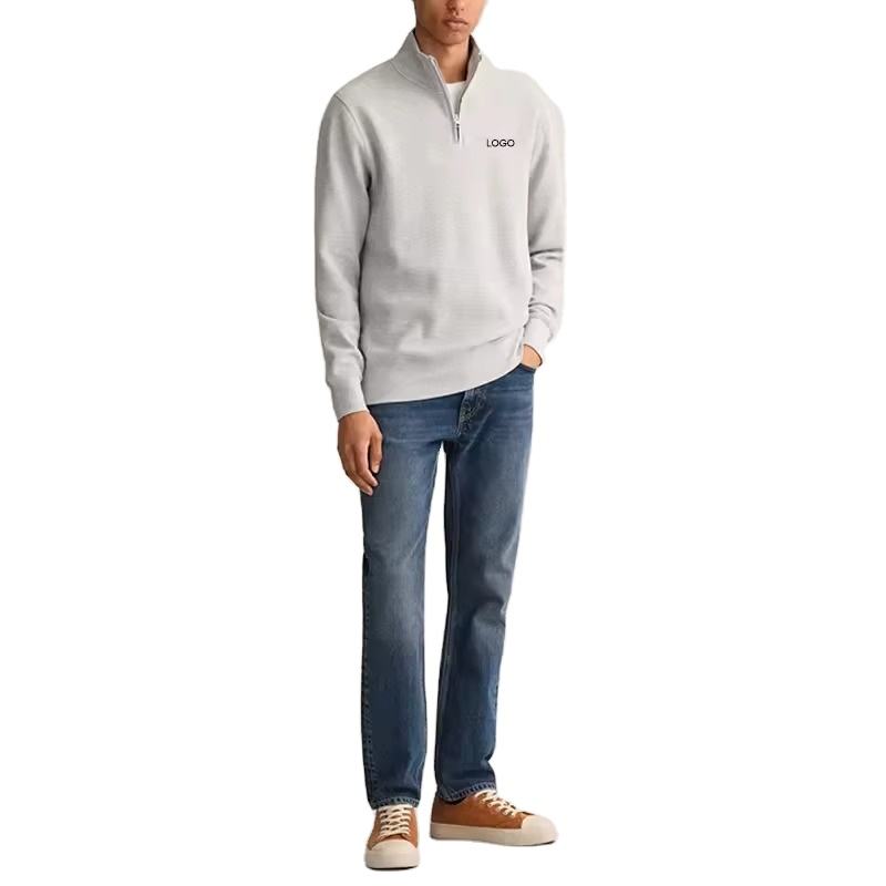 Hot Sale Breathable Custom Black Waffle Oversize 1/4 Zip Pullover Funnel Neck Half-Zip Sweatshirt Men's Hoodies