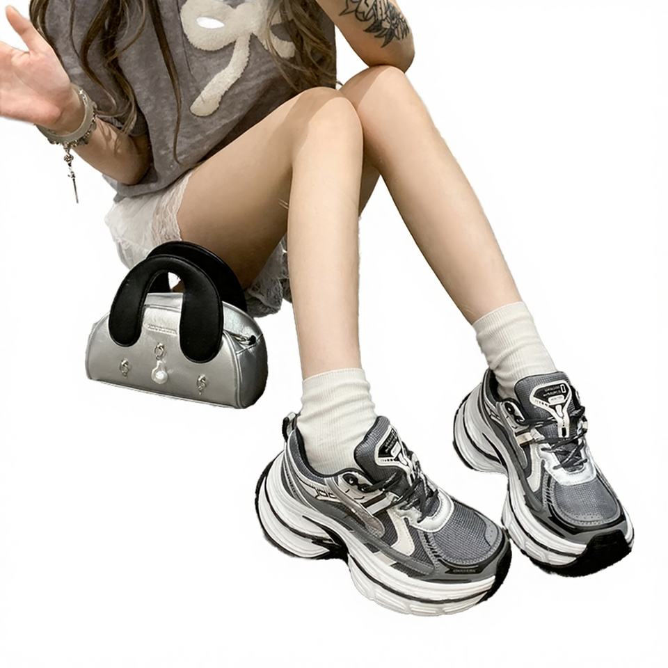 Hot Sale Breathable Lightweight Thick Sole Fashion Trend Sport Shoes Black White Spliced Sneakers for Women Summer Winter Spring