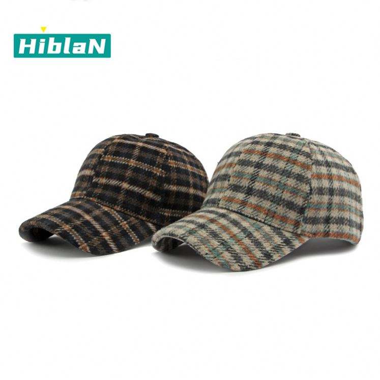 Hot Sale British Style Trendy Woolen Blend Common Street Checkered Stripes Baseball Cap Women Mens 6 Panel Metal Buckle Hats