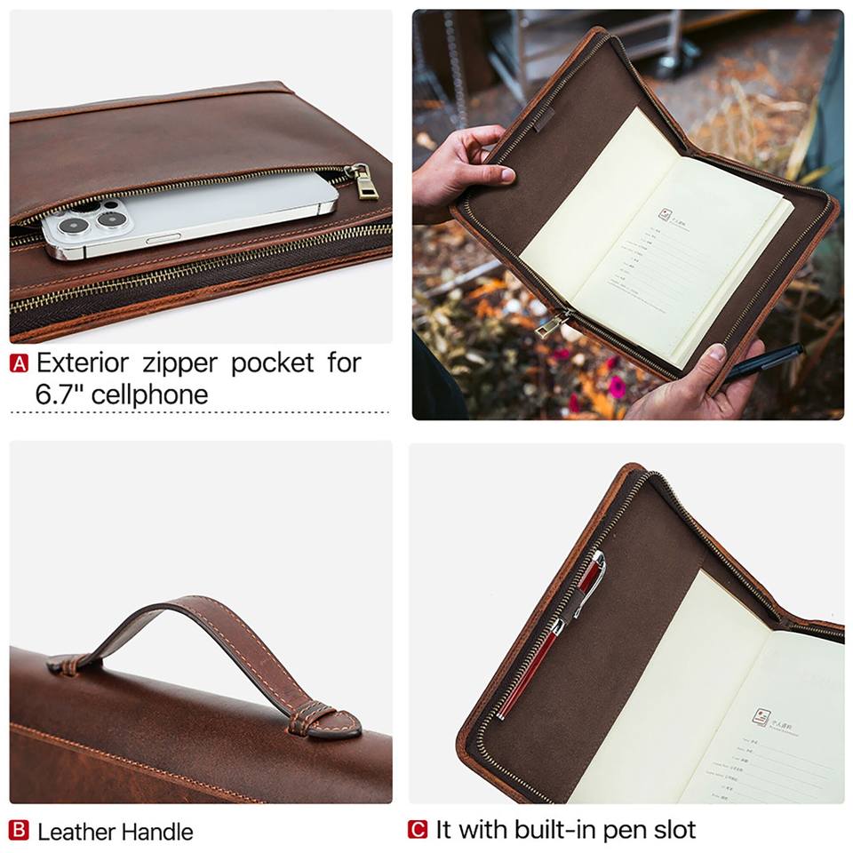Hot Sale Business Organizer A4 Zipper Leather Compendium File Folder With Ring Binder Tablet Padfolio for Pad LP-0005