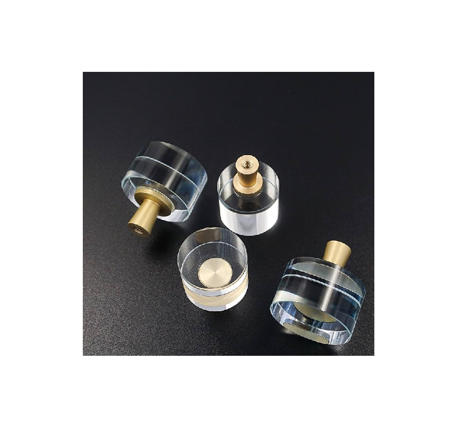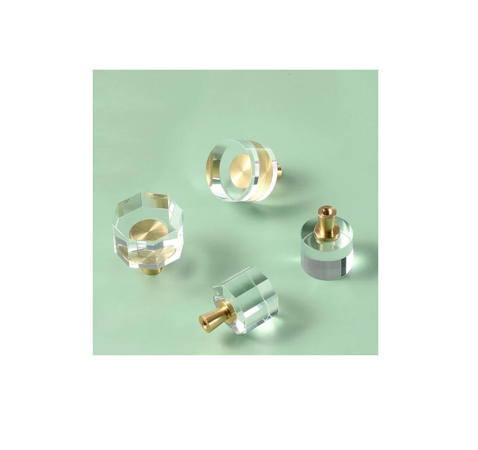 Hot Sale Champagne Gold Acrylic Knob Dresser Drawer Kitchen Bathroom Furniture Brass Crystal Cabinet Pull Knobs