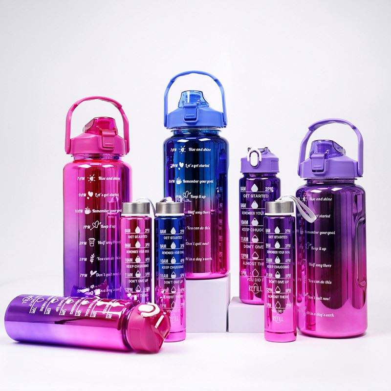 Hot Sale Children School 500ml 900ml 2l Drink Bottle 3 in 1 Set Gradient Color Fitness Motivational Sport Water Bottle With Lid