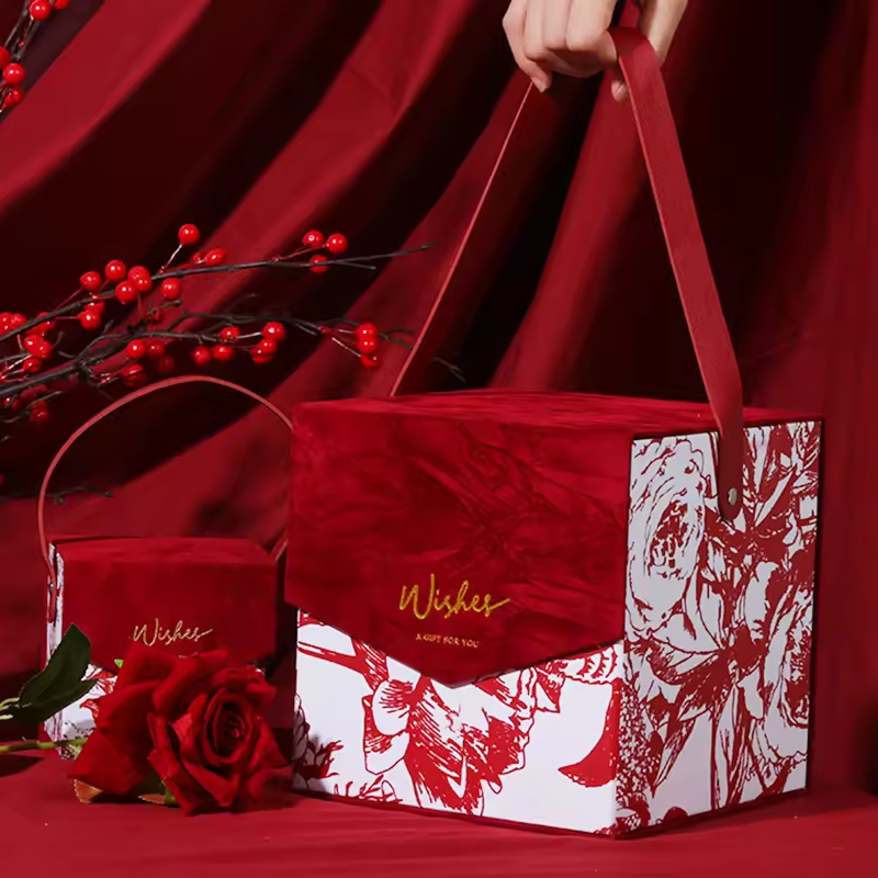 Product name:Empty Luxury Red Gift Paper Boxes With Handle