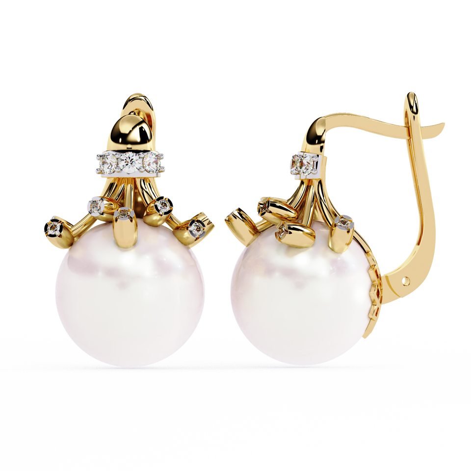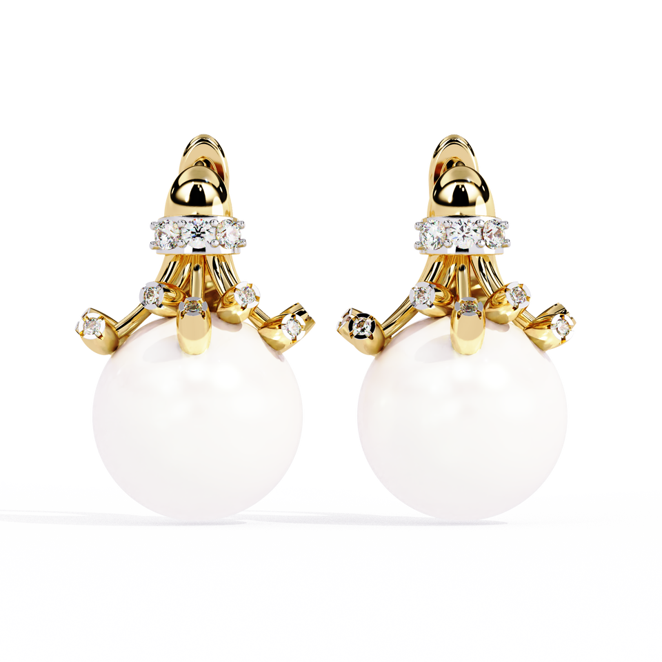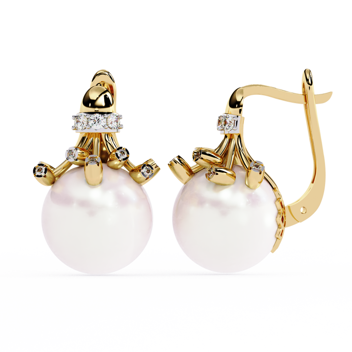 Hot Sale Classic 14K 18K Gold Pearl Drop Earrings Lab Grown Brilliant Cut Diamond Gemstone IGI Certified Romantic Women's Gift